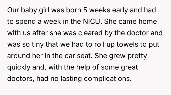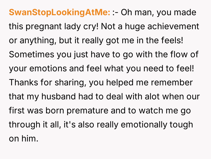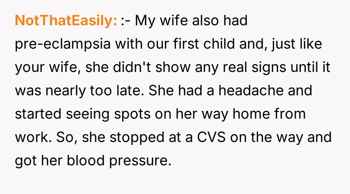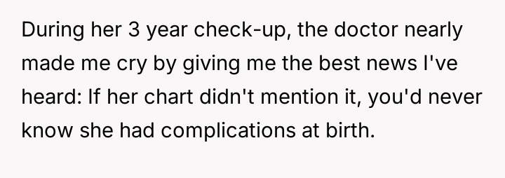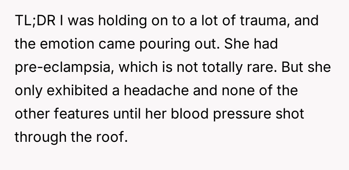 Reading through the Reddit comments, it’s clear that many readers deeply resonated with the raw honesty and vulnerability shared in this story. The trauma and fear experienced by the author during such a critical moment highlight the unpredictable nature of pregnancy complications like pre-eclampsia. The community’s support and understanding reflect a shared empathy for the invisible emotional battles parents face alongside the physical challenges. Many expressed admiration for the author’s strength in focusing on what could be controlled amidst the chaos, a sentiment that underscores the resilience often required in parenting.