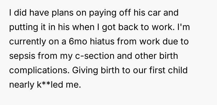 Reading through the Reddit comments, it's clear that many sympathize with the original poster's difficult situation. People recognize the challenges she faces as a new mother recovering from serious health issues, while managing financial responsibilities that seem unevenly balanced. Numerous commenters stress the importance of transparency and communication in a relationship, especially when it comes to shared expenses and major purchases. Many felt that the fiancé's actions regarding finances may have been inconsiderate, given the circumstances, and advocate for more mutual respect and understanding moving forward.