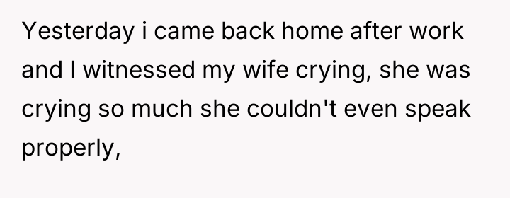 In an instant, a quiet evening shattered into a whirlwind of tears and accusations, leaving a husband bewildered and a wife devastated. The raw pain in her sobs spoke of a trust broken, though the truth remained tangled in misunderstanding and fear.