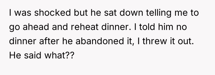Husband ditched my homemade dinner for his mom’s cooking so I threw his plate in the t**sh