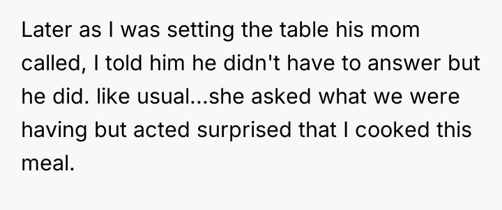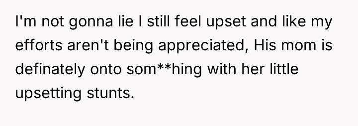 After reading through the Reddit comments, it’s clear that many people sympathize with the original poster’s frustration. The dynamic between her, her husband, and his mother is a classic example of the challenges that can arise in blended family relationships, especially when boundaries and respect aren’t clearly established. Commenters often encouraged her to communicate openly with her husband about how his actions make her feel and to set firmer boundaries with his mother. It seems that many believe the husband’s behavior is dismissive and unfair to his wife, especially after she made such an effort to surprise him.