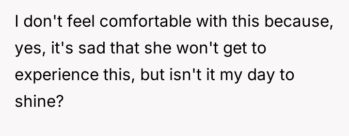 In the midst of her own joy and anticipation, a young woman faces a heart-wrenching dilemma that threatens to overshadow her wedding day. Her cousin, battling a grave illness and yearning for a moment of happiness, asks for a place in the spotlight—one that feels like the bride’s to claim alone. The weight of family expectations and emotional pleas collide, leaving her torn between compa*sion and the right to her own celebration.