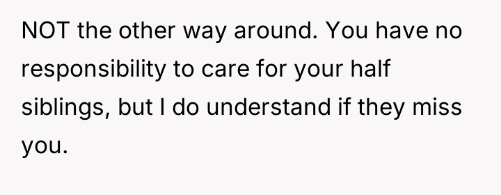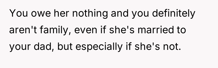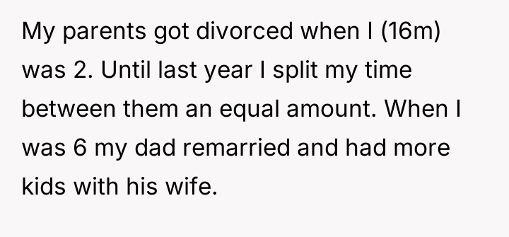 Reading through the Reddit comments, many users expressed sympathy for the OP’s situation, acknowledging the complexities of blended families and shifting custody arrangements. Several commenters pointed out how challenging it must be for him to navigate the changing dynamics with his dad, his stepmom, and his own feelings about where he belongs. Others emphasized the importance of the OP’s autonomy now that he is older, encouraging him to make choices that feel right for him rather than succumbing to external pressures.