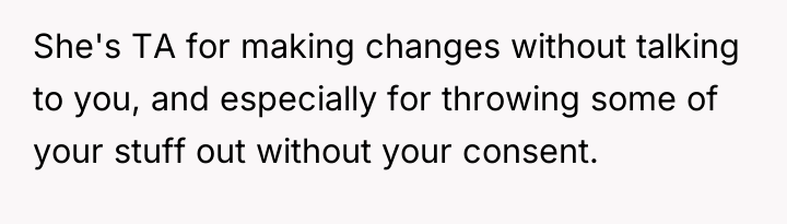 My pr****nt girlfriend is throwing away my sentimental things and redecorating my home without asking