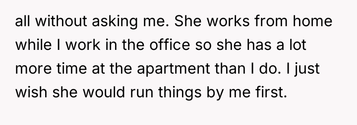 After reading through the Reddit comments, it’s clear that many people empathize with both sides of this situation. The original poster’s girlfriend is trying to make their shared space feel like home during a significant life change, especially with a baby on the way. At the same time, the original poster values the aesthetic and personal touch he’s cultivated in his apartment for years. Many commenters suggest that compromise and open communication are key, ensuring that both partners feel respected and comfortable in their living environment.
