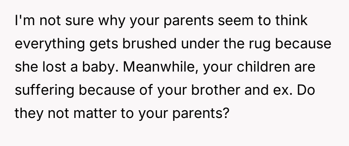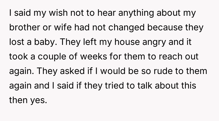 'AITA for showing no sympathy for my brother and my stbex-wife after the loss of their baby and for refusing to let my parents talk to me about it?'