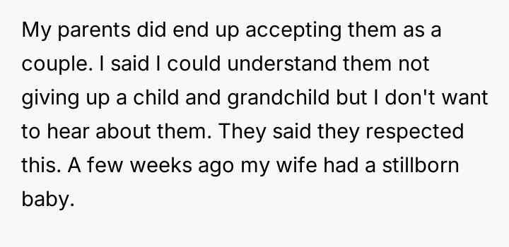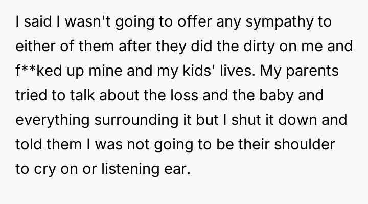 AITA for showing no sympathy for my brother and my stbex-wife after the loss of their baby and for refusing to let my parents talk to me about it?
