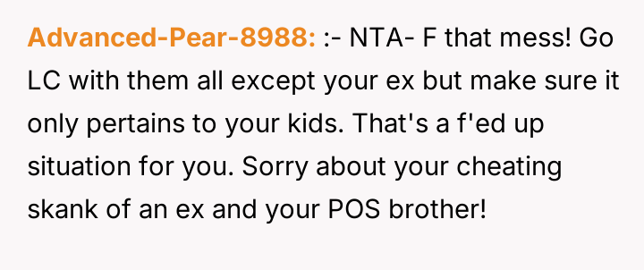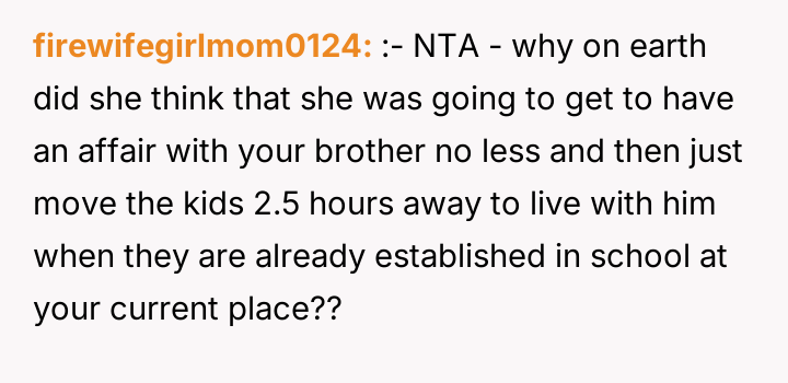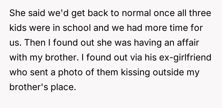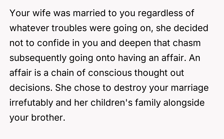 Reading through the Reddit comments, it's clear that many readers empathize deeply with the pain and betrayal experienced by the husband in this story. The discovery of an affair, especially involving a close family member like a brother, adds layers of complexity and hurt to an already fragile marriage. Commenters often highlighted the importance of honest communication and trust in relationships, while some expressed concern for the emotional wellbeing of the children caught in the middle. There was a shared sentiment that, despite the turmoil, prioritizing the kids' stability and seeking professional support would be crucial moving forward.