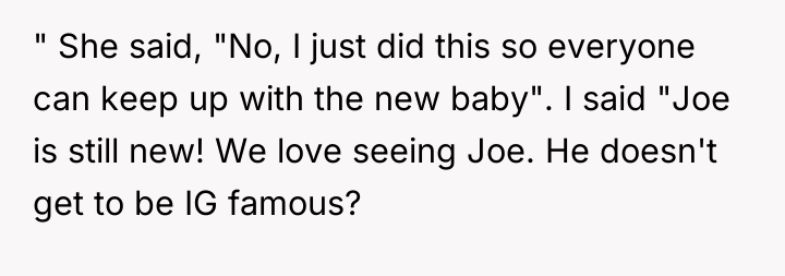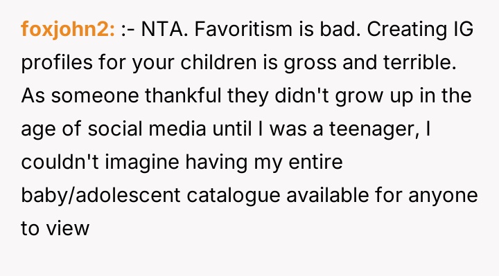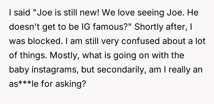 AITA for asking why only one baby is IG famous?
