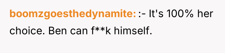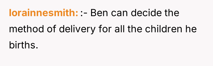 The OP's dilemma stems from attempting to please both parties in a zero-sum situation. A professional path forward would involve encouraging Kate and Ben to seek a neutral, third-party consultation, such as with an obstetrician or a specialized childbirth counselor, who can objectively review the medical necessity and risks associated with both planned vaginal delivery and elective C-section based on Kate’s specific health profile, rather than relying solely on anecdotal evidence.