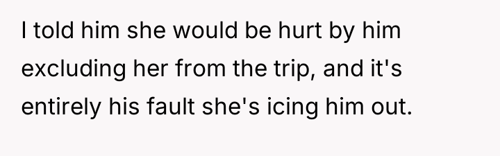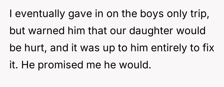 AITA for not helping my husband repair his relationship with our daughter after he excluded her from a "guys only trip"?