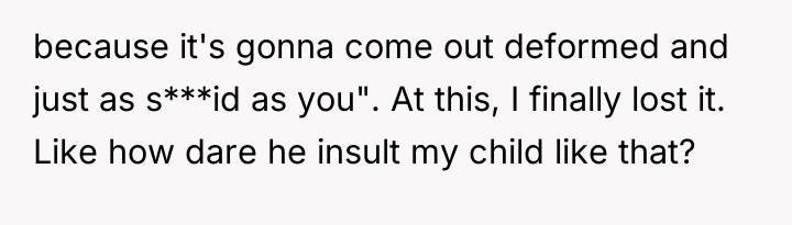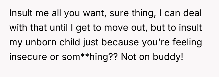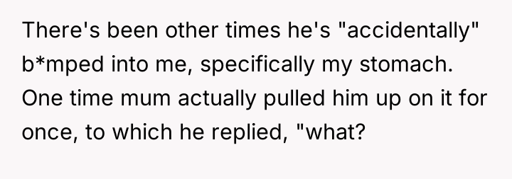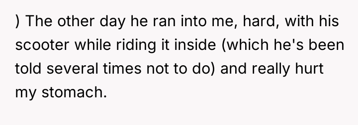 My little brother keeps ramming into my stomach and calling my unborn baby names