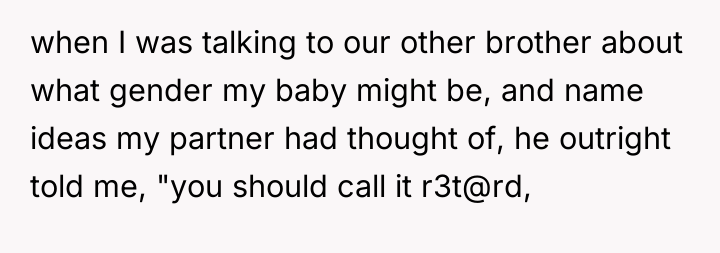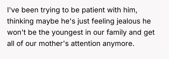 'My little brother keeps ramming into my stomach and calling my unborn baby names'