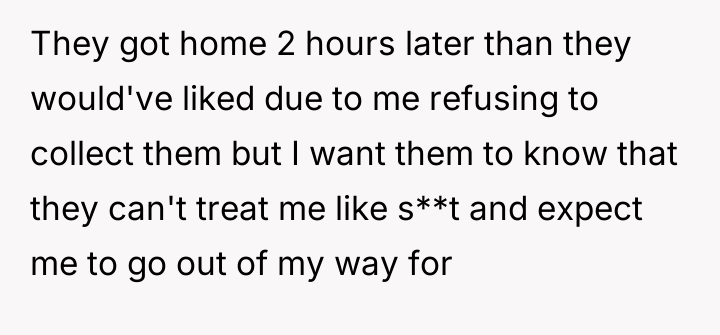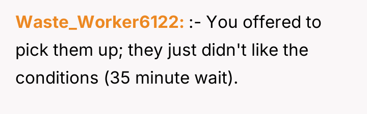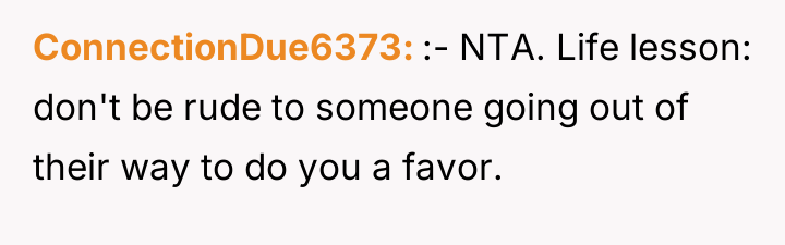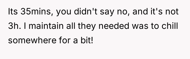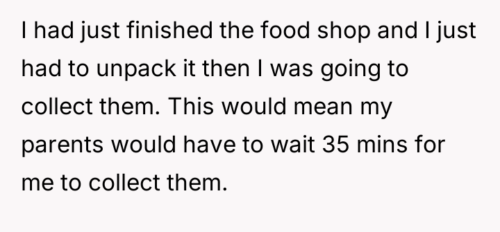 From reading the Reddit comments, it seems most people sympathize with the original poster’s tight schedule and the difficulty of juggling multiple responsibilities as a single parent. Many users pointed out that the parents could have been more considerate by giving a clearer, earlier heads-up about their exact arrival time to avoid last-minute stress. Some commenters also suggested that since the parents knew about the packed weekend, they should have arranged alternative transport if needed or at least been more flexible.