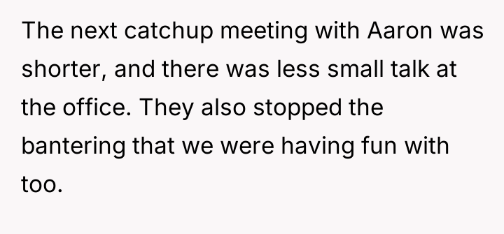 The subsequent coldness from the boss and coworkers likely stems from a perceived breach of informal team loyalty or a discomfort with the escalation process. In many team dynamics, conflict resolution often occurs informally, and involving formal HR channels can sometimes be viewed by peers as an overreaction or an act of disloyalty, even when the initial report was valid. A potential path forward for OP involves maintaining professional conduct, continuing to contribute positively to projects, and allowing time for the immediate tension to dissipate, while remaining ready to discuss the situation calmly with Aaron if the professional relationship does not improve.