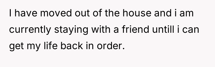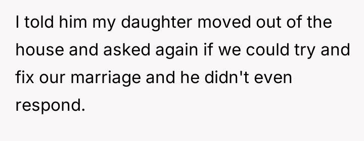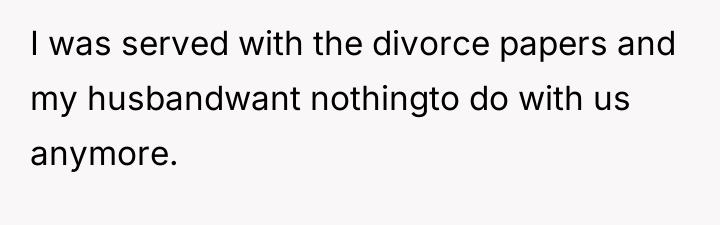 Following the separation, the husband has served the OP with divorce papers, moved out, and is strictly adhering to a prenuptial agreement that leaves the OP with very little support. The immediate aftermath includes the OP moving in with a friend, her family continuing to hara*s the husband, and her daughter attempting to intervene, leading to a restraining order and her arrest. The OP is now facing extreme financial instability, has lost contact with her daughter, and is struggling with the sudden and complete severance from her marital and family support systems.
