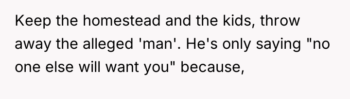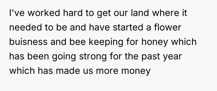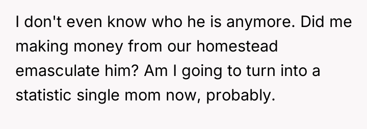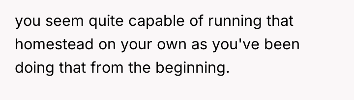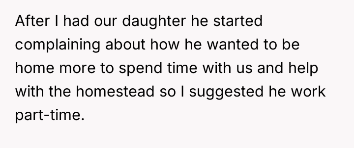 After reading through the Reddit comments, it’s clear that many people sympathize with the wife’s dedication to fulfilling their shared dream of a small homestead, especially since she took the financial initiative to buy the property and start the business. Commenters appreciated that she was able to contribute financially without compromising her role as a stay-at-home mom, which was part of their original agreement. However, some pointed out the importance of clear communication about money and contributions, especially since the husband had no savings and presumably felt some pressure or insecurity about the financial dynamics.