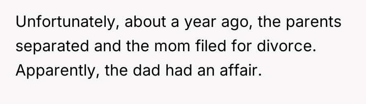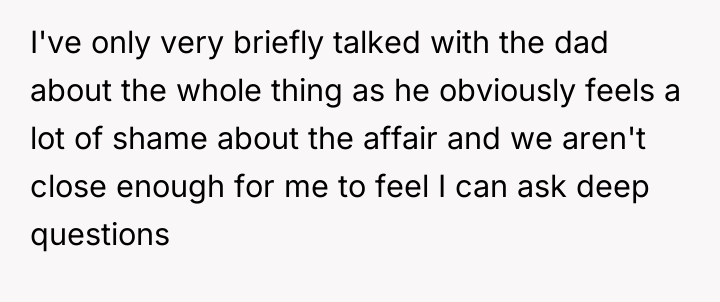 In my opinion, this story highlights the complexities of adult relationships and the ripple effects on a community. While the dad's affair led to painful consequences, the respectful boundaries maintained by the narrator show empathy and maturity. It’s a reminder that sometimes, offering quiet support without intrusion is the kindest way to help those going through tough times.
