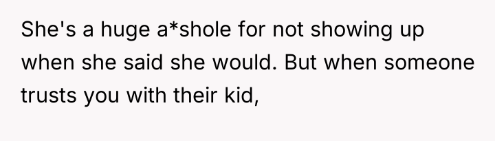 The debate centers on where the responsibility lies when caregiving arrangements fail due to one party's absence: Should the caregiver sacrifice all personal obligations when the person dropping off the child is severely late and unresponsive, or is it acceptable to secure alternative, trusted care after a reasonable period of waiting? Was the OP justified in leaving, or did he abandon his responsibility?