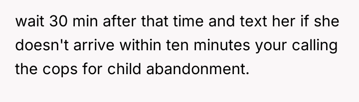 The OP’s actions were appropriate given the circumstances. A constructive recommendation for handling this in the future involves setting explicit contingency plans beforehand, such as: 'If I haven't heard from you by 2 p.m., I will arrange for Aunt Carol to watch him until you arrive, and you must call her directly.' This pre-establishes limits and removes the emotional pressure when the initial plan fails.