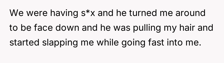 The original poster (OP) typically prefers vanilla s*xual activities, but her boyfriend recently began introducing rougher elements into their s*x life. This escalation included actions such as hair pulling, spanking, and placing hands on the OP's neck to the point where she felt she might pa*s out.