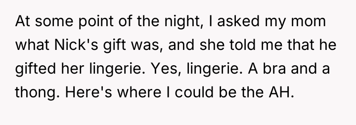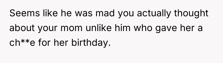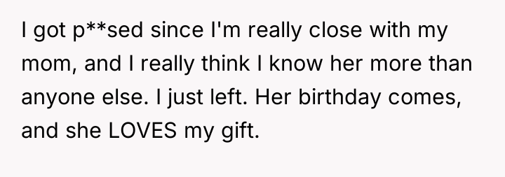 After reading through the Reddit comments, it’s clear that many readers sympathize with the original poster’s excitement and thoughtful planning for her mother’s birthday gift. People appreciate her effort to surprise her mom with something meaningful and well-chosen. However, there’s also a lot of discussion about Nick’s behavior—many feel his reluctance to help or communicate about the gift was strange and perhaps even a bit passive-aggressive. Some commenters speculate that he might have been jealous or simply didn’t want to be involved, which caused tension between them.