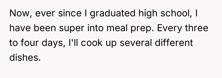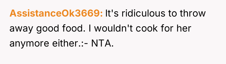 The original poster feels deeply disrespected and financially taken advantage of because his wife consistently discards the substantial effort and money he invests in meal prepping for her. His reaction was to immediately cease preparing food for her, creating a direct confrontation regarding her disregard for his efforts and their shared resources.