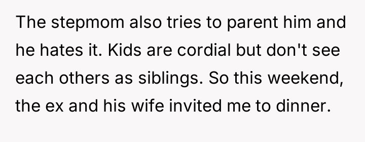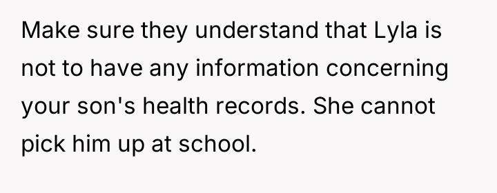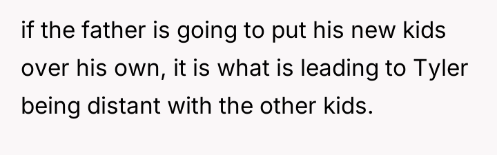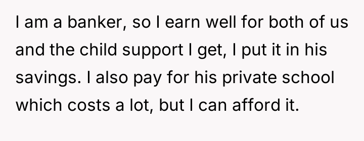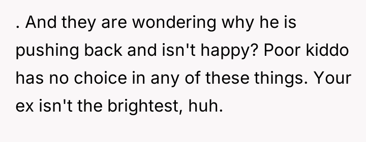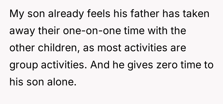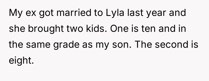 The ex-partner and stepmother's request to remove the son from his established private school to equalize schooling with the stepchildren is a significant overstep. It suggests a failure to respect the boundaries set by the OP regarding their financial commitments and decisions for their child. The OP has been the primary financial provider for this specific educational need, and unilaterally demanding a change based on the financial situation of the new household demonstrates poor understanding of co-parenting boundaries. Furthermore, the emotional distress of the son, feeling neglected by his father, is a direct outcome of the father prioritizing the new family unit's activities.