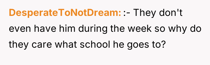 Should a co-parent be entitled to demand changes to the established educational setup of a child, even when they are financially capable of contributing to the current arrangement, simply to create perceived equality within a newly formed family unit? Or does the primary custodial parent have the final say when their arrangement meets the child's needs and is fully funded by them?