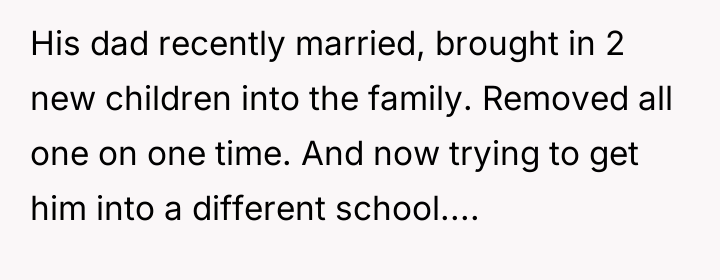 As renowned family therapist and author Dr. Terri Givens states, “When a family restructures, the hardest work is often the negotiation of resources—time, money, and attention—among all members, new and old.” In this situation, the core issue is the re-negotiation of resources (specifically educational opportunity) within a complex co-parenting and blended family structure.