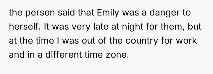 Distance had long stretched the fragile ties between two step-sisters, but when a desperate, unnamed voice reached out in the dead of night, the younger sister’s heart refused to ignore the warning. Torn between the miles and the silence that had grown between them, she chose to act—calling for help even as she lay oceans away, hoping to protect Emily from an unseen danger.