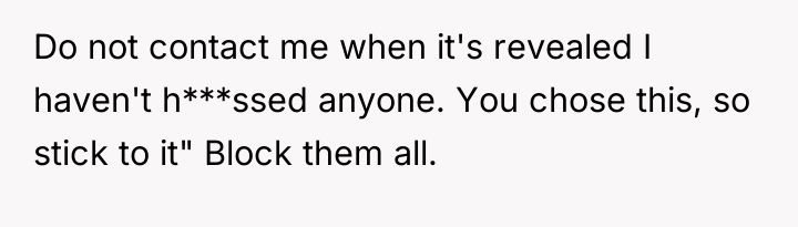 The OP's decision to enact a 'soft cut-off' is an appropriate self-preservation measure when direct communication channels are poisoned by baseless accusations and groupthink. For future interactions, the OP should maintain firm boundaries regarding contact frequency and content. If reconciliation is ever sought, the OP should focus on presenting verifiable evidence that proves they lacked the means or motive for the alleged harassment, shifting the focus from emotional defense to factual accountability on the accuser's side.