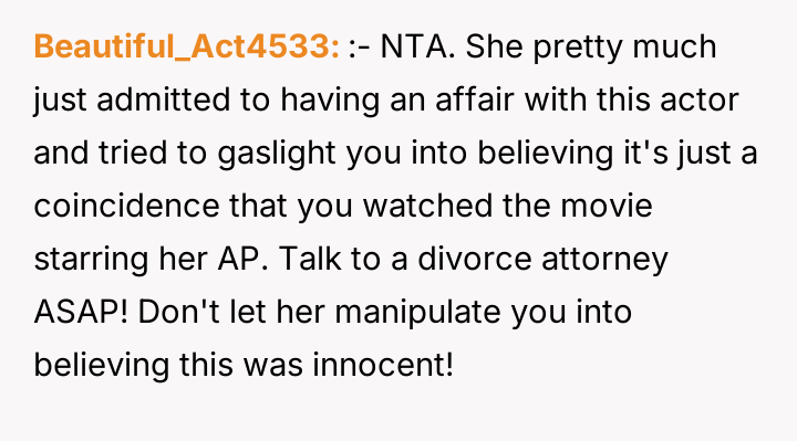 AITAH for distancing from my wife after she called an actor handsome during our romantic movie night?