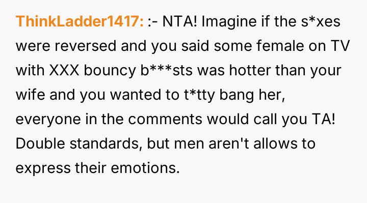 After reading the Reddit comments on this story, it's clear that many people empathize with the husband's feelings of hurt and betrayal. They point out that while his wife's comment may have seemed harmless or even playful to her, it struck a deeper nerve for him, highlighting underlying insecurities and communication issues in the marriage. The consensus is that such a break in emotional trust can be painful, and addressing these feelings openly is crucial before making any irreversible decisions like divorce.