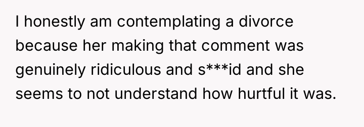 The husband's heart burned with betrayal, interpreting his wife's words as a deep rejection rather than a passing remark. Now, silence looms heavy in their home, and the future of their union hangs in the balance, teetering on the edge of heartbreak and the possibility of divorce.