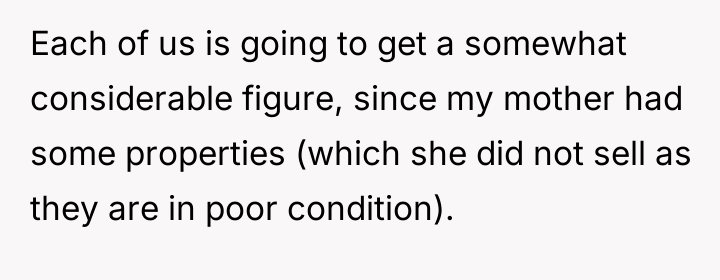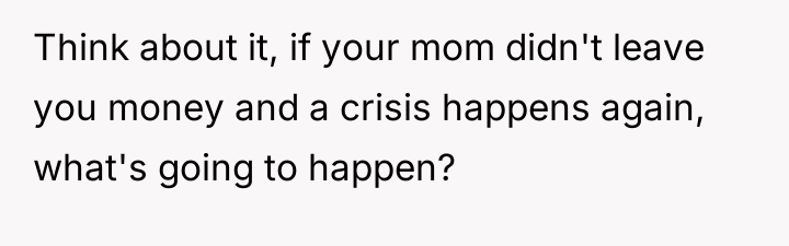 In my opinion, while supporting a family is a shared responsibility, it’s crucial that financial decisions respect each partner’s contributions and boundaries. The husband’s refusal to help with medical expenses, yet expecting her to liquidate her inheritance, suggests an imbalance that could breed resentment. Ideally, couples should work together to find equitable solutions, especially when it comes to inherited assets and unexpected expenses. OP might benefit from seeking financial counseling or mediation to navigate this sensitive situation and protect her interests.