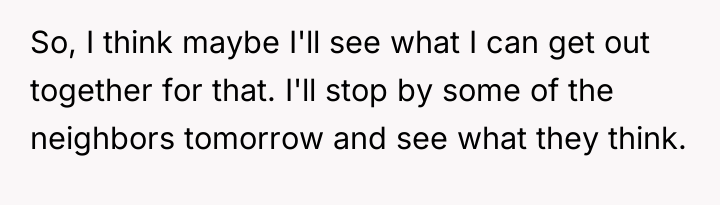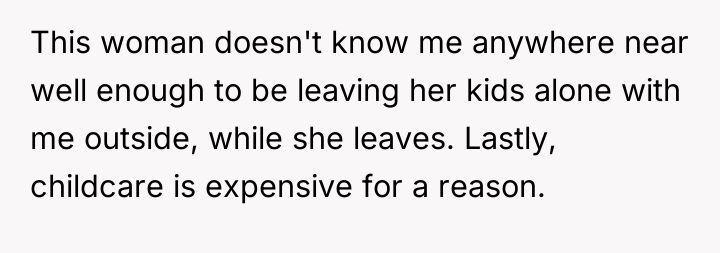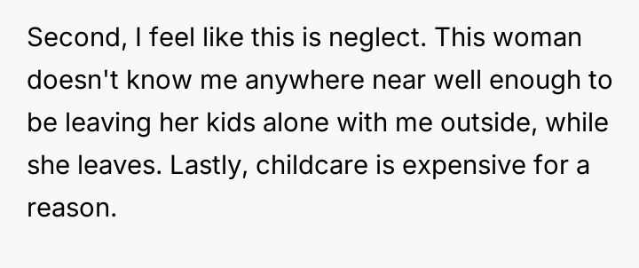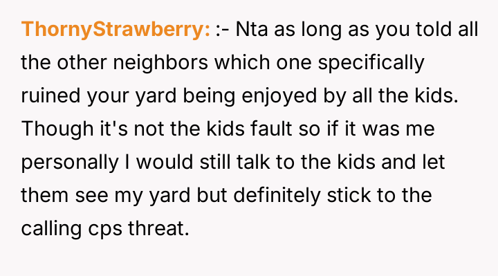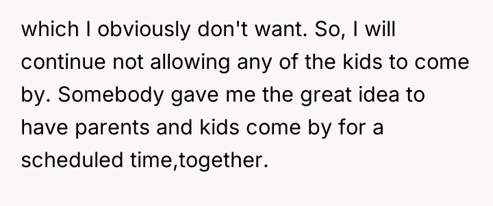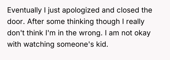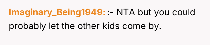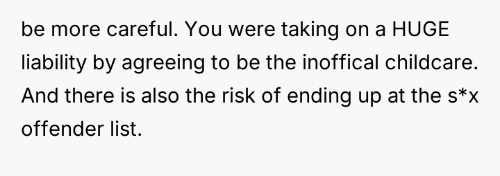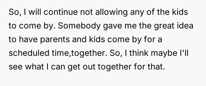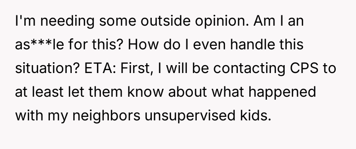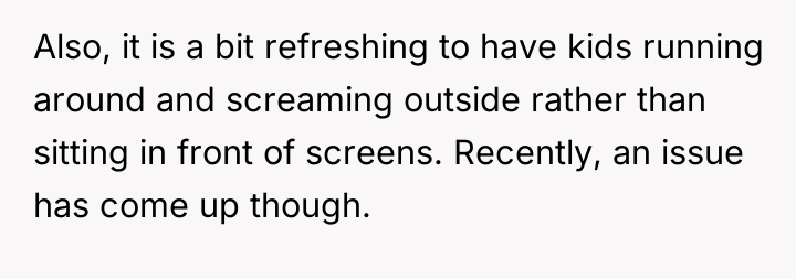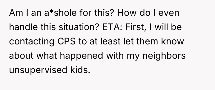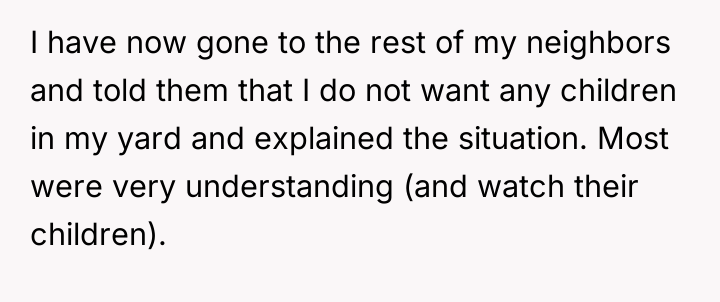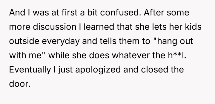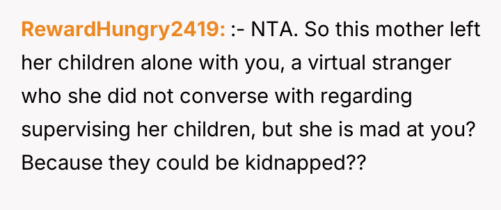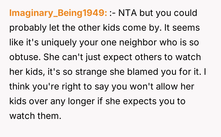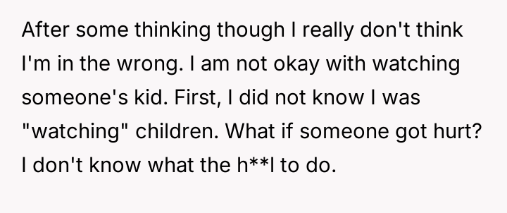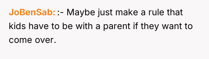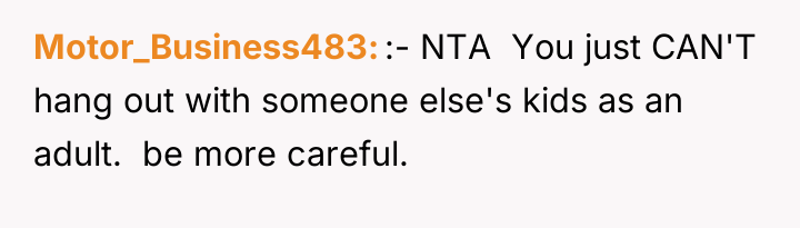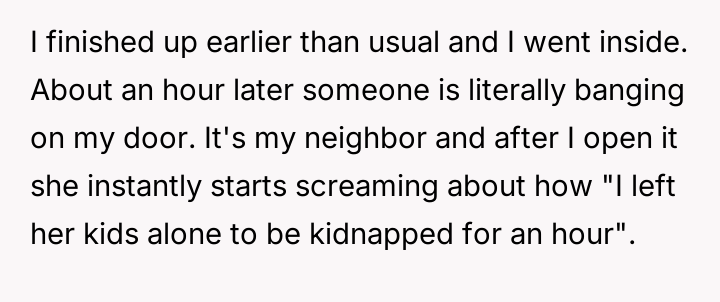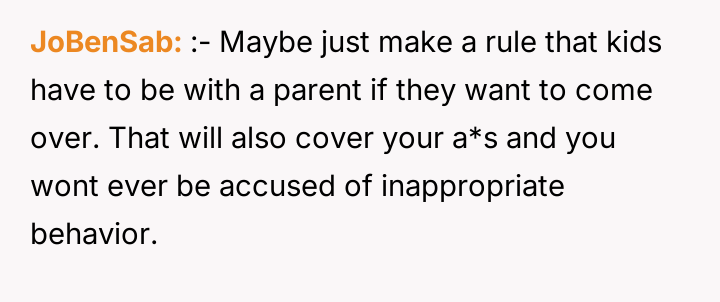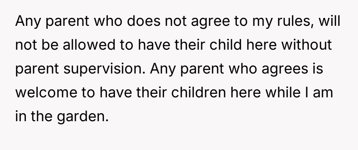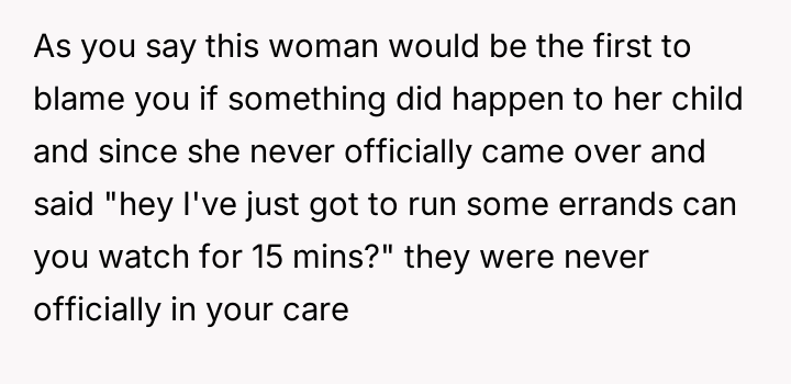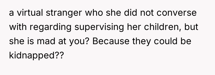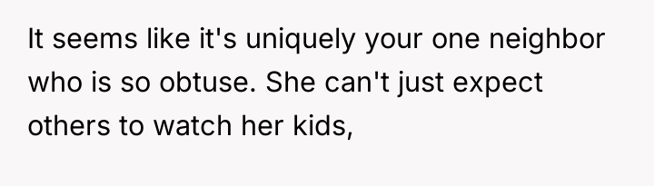 In my opinion, the situation highlights the balance between community trust and parental concerns. While it's understandable that parents want to ensure their children's safety, it's also important to trust responsible neighbors who contribute positively to the community. Perhaps a conversation between the two adults could help set clear expectations and boundaries, maintaining both the children's safety and the neighborly spirit that benefits everyone.
