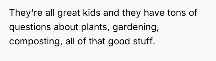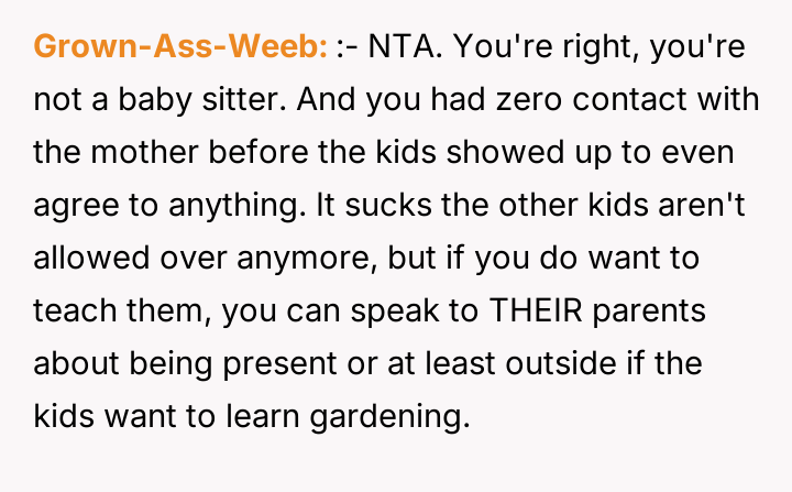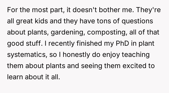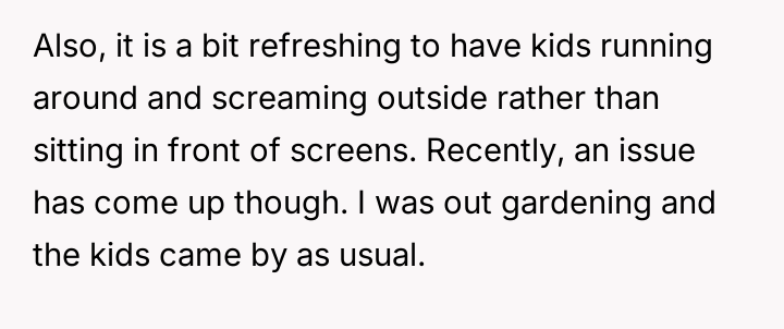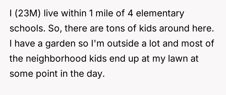 Reading through the Reddit comments, it's clear that many people sympathize with the original poster. They appreciate the joy and educational value he brings to the neighborhood kids by sharing his passion for gardening. Most commenters agree that kids playing outside and learning from a knowledgeable adult is a positive thing and that the neighbor's reaction seems disproportionate. Some even suggest that the neighbor might be overly anxious about her children's safety, given the close-knit and seemingly safe environment.