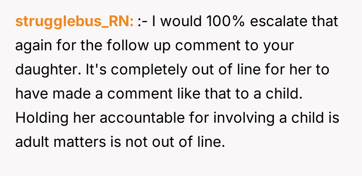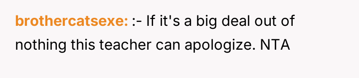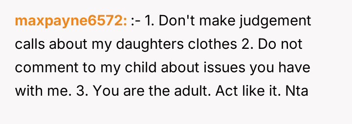 The OP’s actions were understandable from a protective standpoint, but likely inappropriate in execution. A more effective approach would have been a private, firm email to the principal (bypassing the teacher initially) stating clearly that the comment was inappropriate and explaining the policy expectations for staff feedback regarding student attire. Future interactions should focus on setting clear, professional boundaries regarding staff communication rather than engaging in public retaliation, which often escalates conflict without resolving the underlying issue of inappropriate commentary.