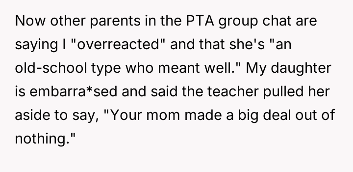 But standing up for her child only bred whispers and judgment among other parents, painting her as the overreactive troublemaker while her daughter faced quiet humiliation. In a battle between outdated mindsets and a mother’s fierce love, the question lingers: was she right to raise her voice, or did she cross a line?