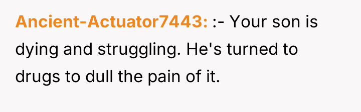 As renowned addiction expert Dr. Gabor Maté explains, “Addiction is fundamentally a response to early injury, not a choice.” While this statement is critical for understanding the root causes of the son's behavior—likely exacerbated by the trauma of his prognosis and the resulting depression—it does not absolve the parents of the need to establish firm boundaries necessary for their own survival.