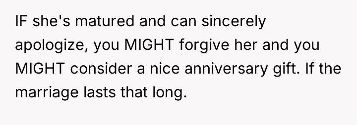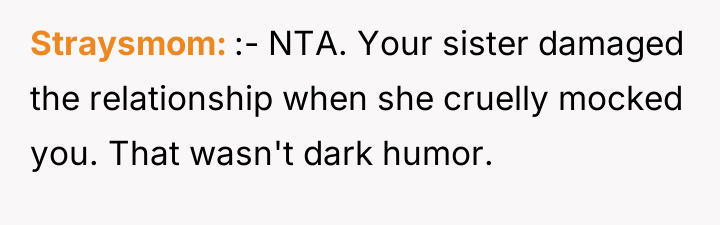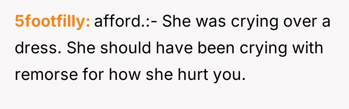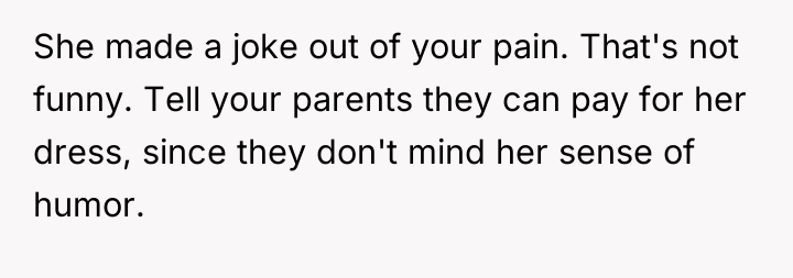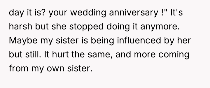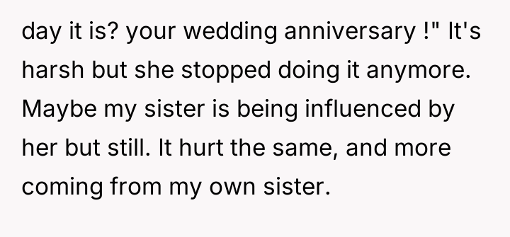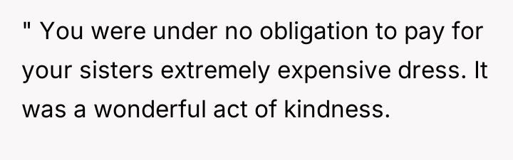 After reading through the Reddit comments, it’s clear that many readers empathize deeply with the original poster’s pain and resilience. The betrayal on her wedding day was a devastating blow, but her decision to support her younger sister in such a meaningful way showcases remarkable strength and kindness. Commenters praised her for turning a painful experience into a source of support and love for her family, highlighting how she transformed her heartbreak into something positive.