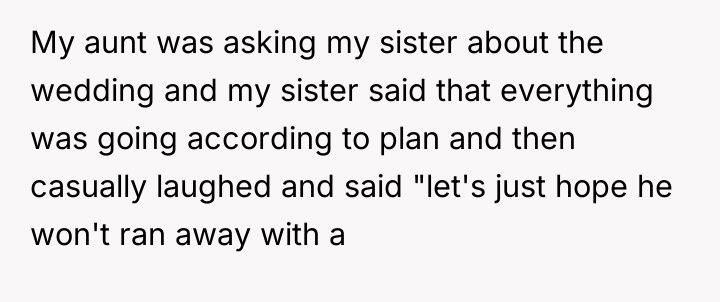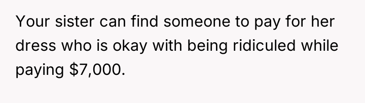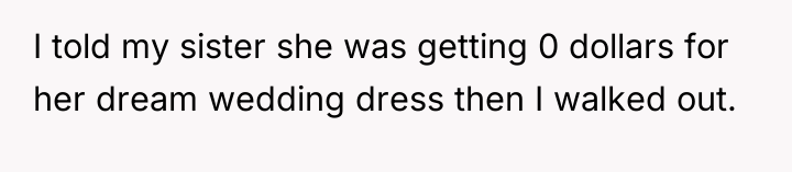 Generous Sister Rescinds Her Offer To Pay For Sibling's $7k Wedding Gown When The Bride-To-Be "Joked" About Her Cheating Runaway Groom