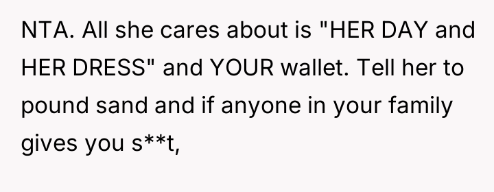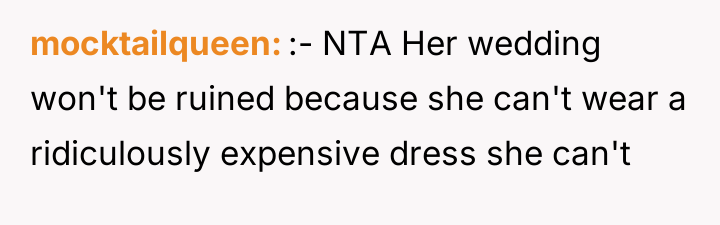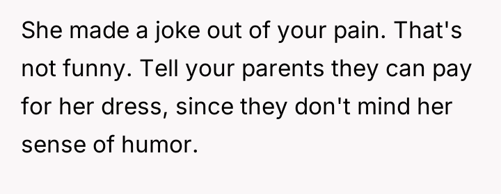 'AITA for backing out of paying for my sister's wedding dress over a "joke" she made?'