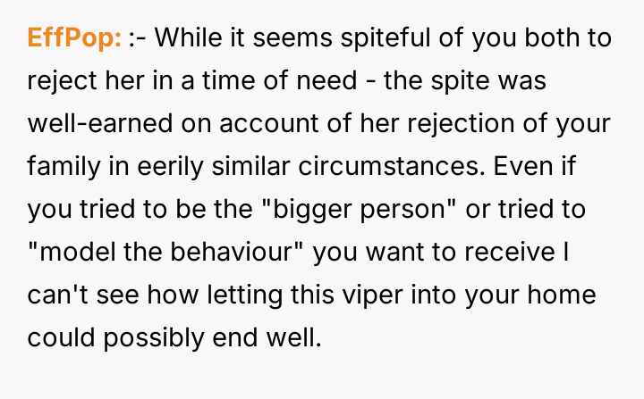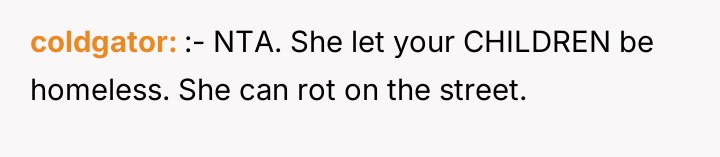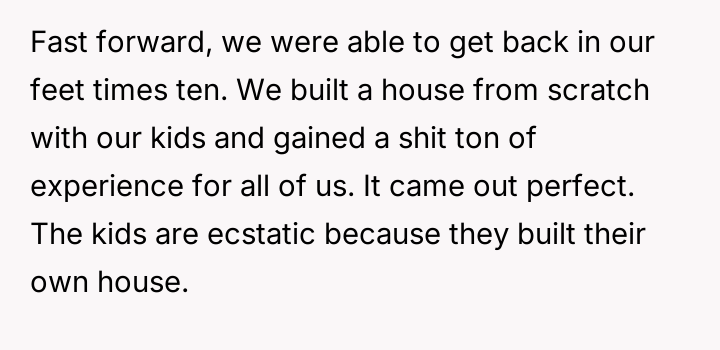 In my opinion, this story is a powerful reminder of the importance of empathy and solidarity during tough times. It also shows that perseverance and hard work can lead to incredible comebacks, even from the most desperate situations. While family support is ideal, not everyone is fortunate enough to have it, and this makes the OP’s journey all the more inspiring. Their ability to build a new life from scratch with their children is a testament to human strength and hope.