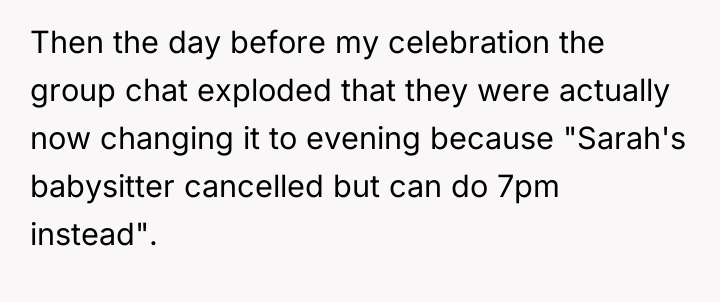 'AITA for celebrating my birthday without my friends after they rescheduled around babysitters again?'