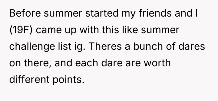 Before the summer began, a group of friends crafted a playful challenge list, aiming for lighthearted fun and innocent dares. But as days pa*sed, the dares spiraled into wild, outrageous acts that pushed boundaries far beyond the original intent, leaving one reserved girl feeling increasingly uneasy and isolated.