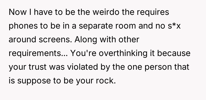 The OP's questioning of whether this is 'normal' or if they are 'overthinking' highlights the emotional confusion caused by betrayal. It is not normal or acceptable in a relationship built on respect. The husband's motivation (whether for personal memory, performance anxiety, or something else) is secondary to the fact that the action occurred without consent. The OP's actions in stopping the activity were entirely appropriate. Moving forward, the couple must address this through professional counseling to rebuild trust, focusing not just on consent for future sexual acts, but on establishing inviolable rules for digital privacy and mutual respect.