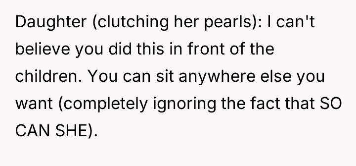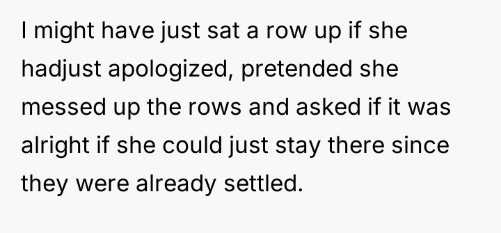 As renowned researcher Dr. Brené Brown explains, “Boundaries are the distance at which I can love you and me simultaneously.” In this situation, the OP established a firm boundary regarding their purchased property (the seats), while the opposing party, represented by the daughter, attempted to enforce a boundary based on social comfort or perceived power, demanding the OP move despite having paid for their location.