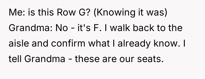 Mom demands I sit somewhere else because she wants to sit in my seats at theater